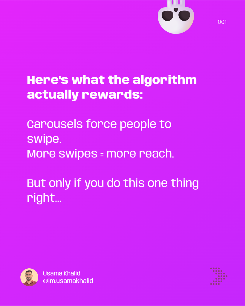 LinkedIn’s algorithm prioritizes dwell time — how long someone stays on your post. Carousels force users to swipe through multiple slides, which signals to LinkedIn that your content is valuable.